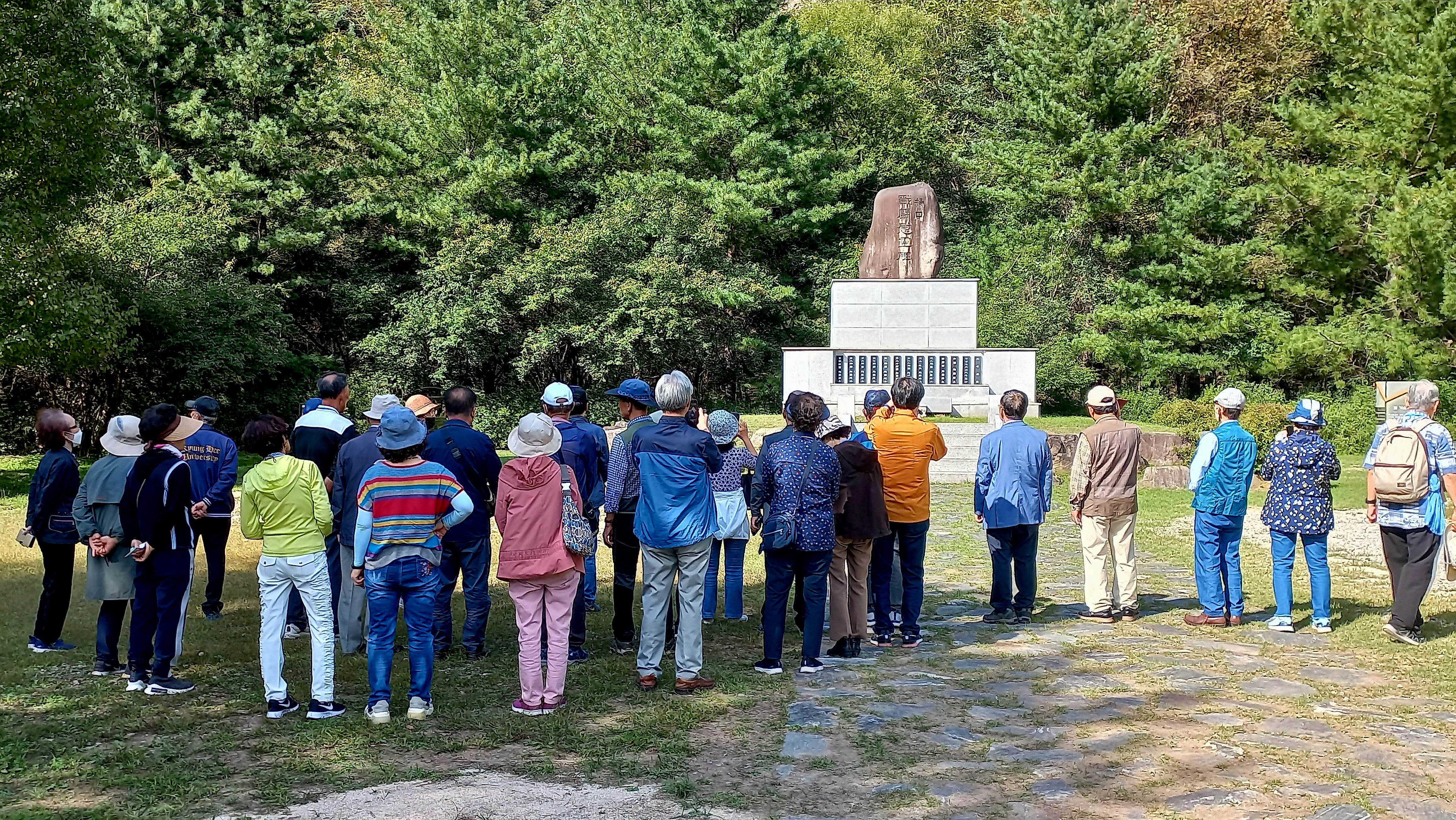 위령비에 묵념후 해설사의 설명을 듣습니다